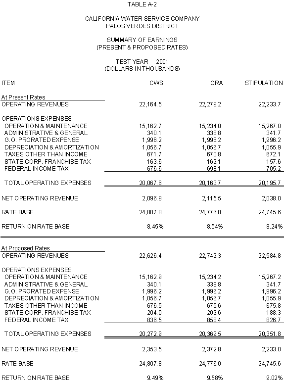 In D.00-05-047, the Commission adopted a procedure for CWS's first combined filing for its Palos Verdes and Hermosa-Redondo Districts and Dominguez's South Bay District. As required by the adopted procedure, CWS is scheduled to file a combined case in 2001, with rates effective in 2002. In response to the Assigned Commissioner's Ruling and Scoping Memo, dated January 11, 2001, in A.00-09-009 et al., the Parties have submitted briefs that show that CWS's request to increase rates for the Palos Verdes District is consistent with the procedure and requirements adopted in D.00-05-047. In the event it is modified for the Palos Verdes District, however, the parties agree that the Stipulation should be adopted without modification for all other districts, including the general office.