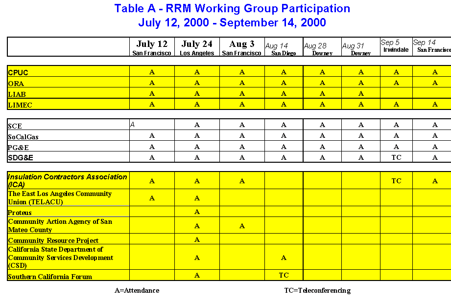 Before turning to the issues, we must address the utilities' recommendation that we reject the joint comments of SESCO and ICA out of hand because they have "circumvented the Working Group process." We believe that this recommendation is simply without merit. Participation at the Working Group meetings by interested parties was never mandatory, contrary to the utilities' assertions that "the Commission directed interested parties to meet in a workshop setting to discuss and, if possible, reach consensus on outstanding reporting issues."30 Rather, the Assigned Commissioner encouraged interested parties to take advantage of the forum, which is "open to interested parties," as some did.31 The Assigned Commissioner also provided all interested parties and the LIAB the opportunity to comment on the RRM Report, without qualification. We will not ignore the comments of an interested party on the RRM Report just because that party did not attend the workshops that led up to the report.