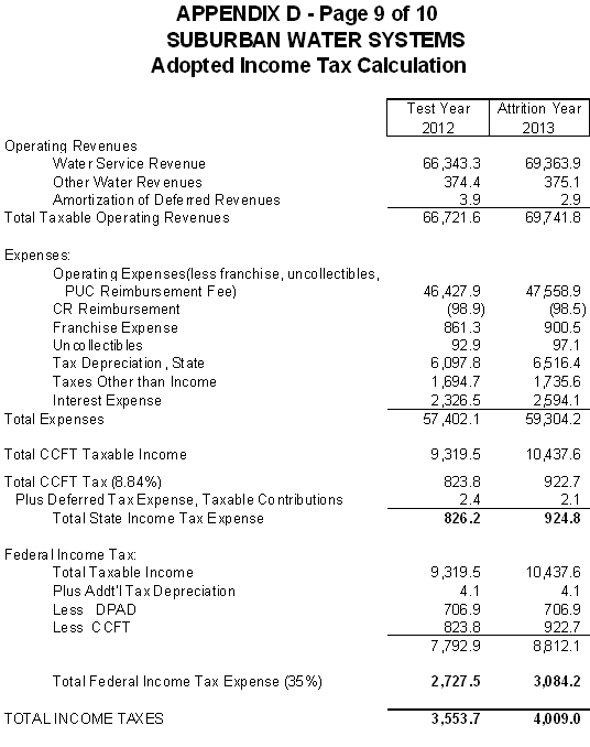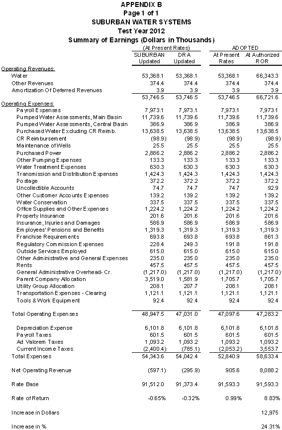 Test Year 2012 Summary of Earnings