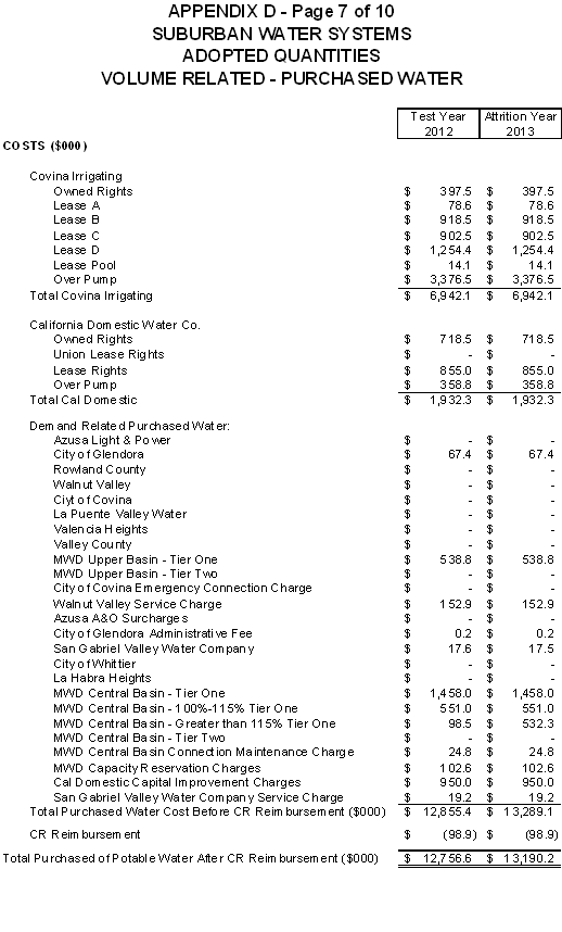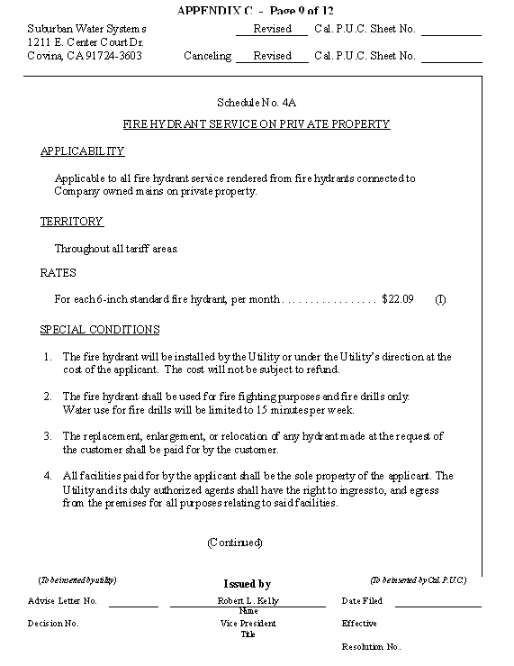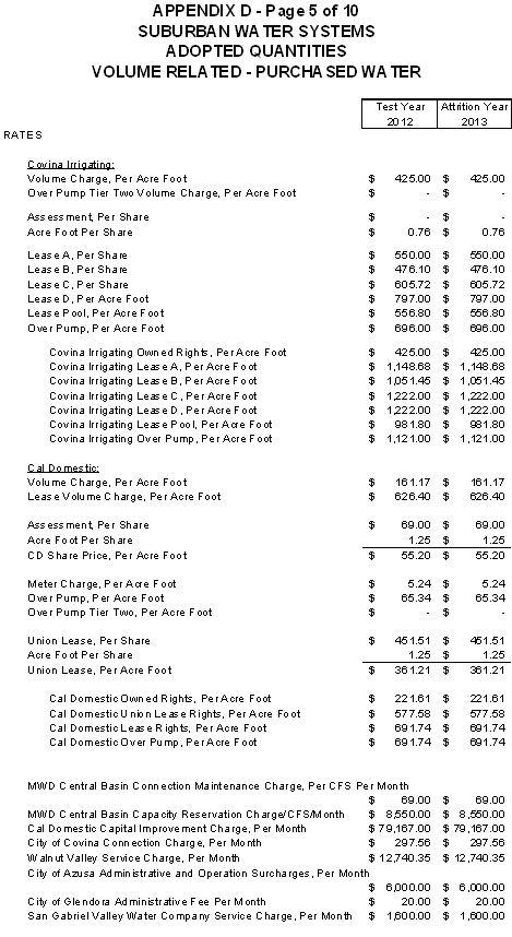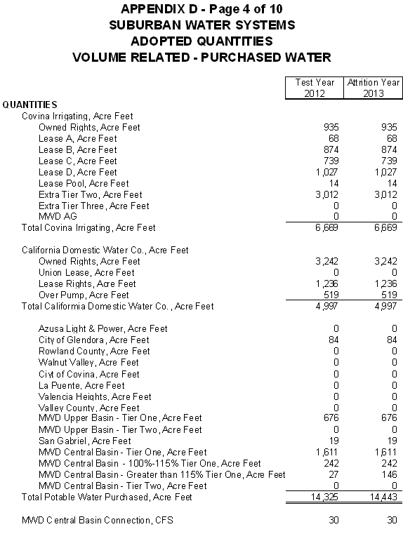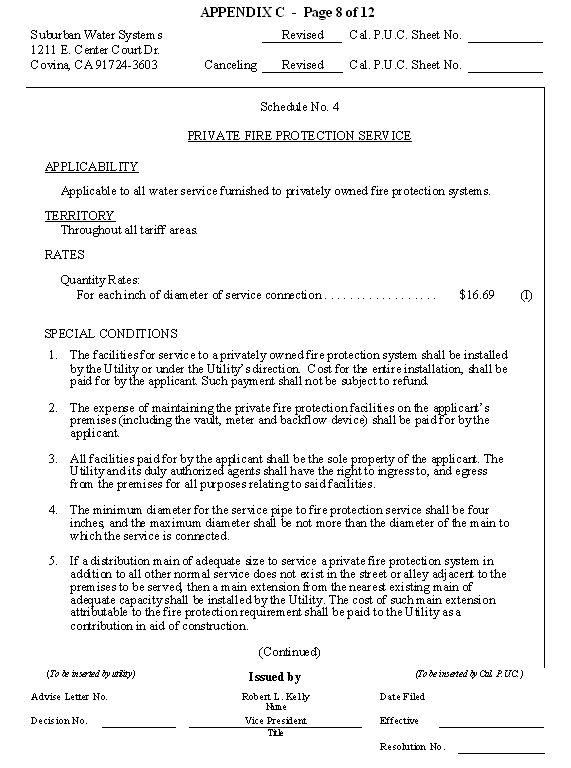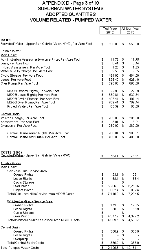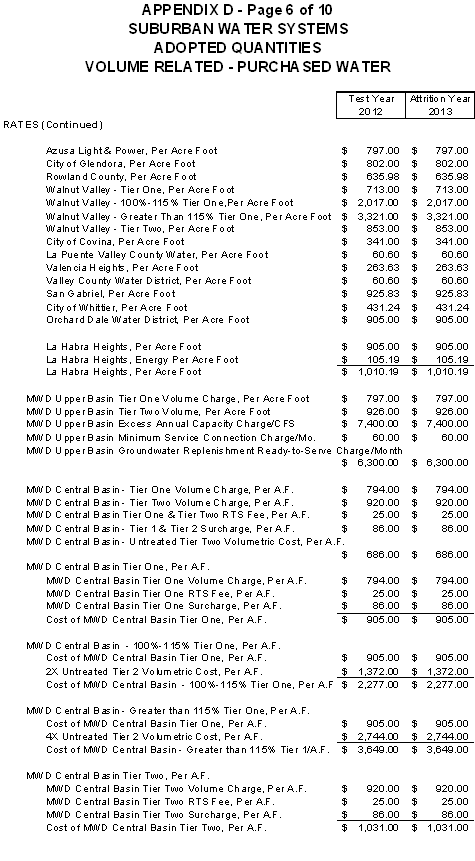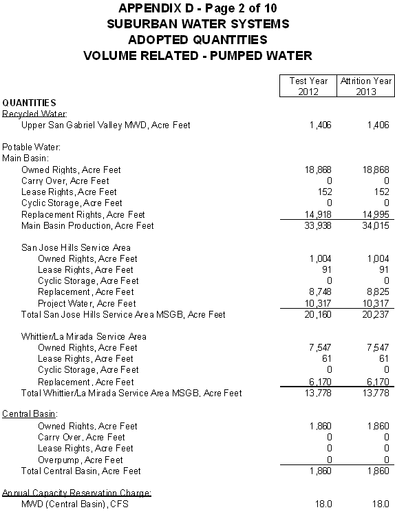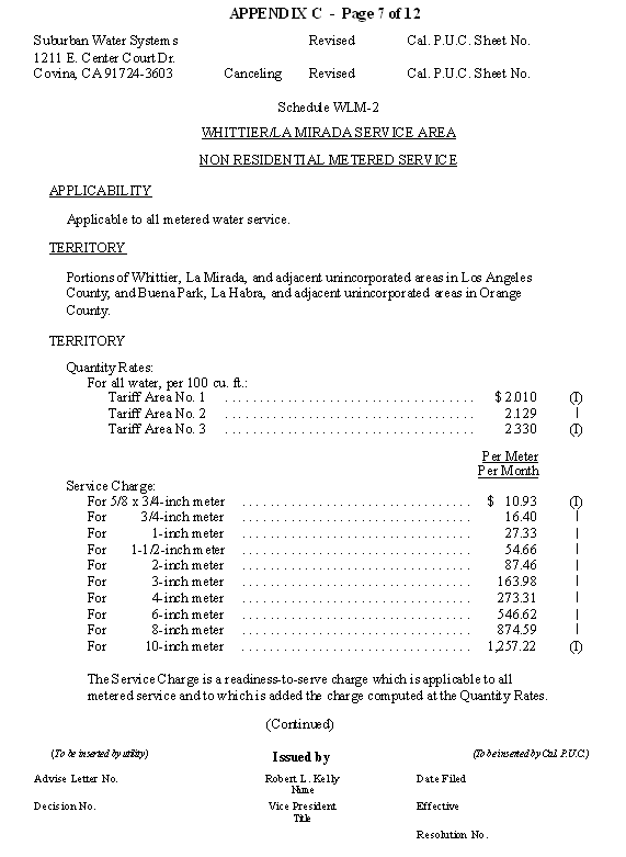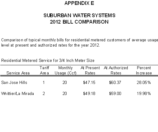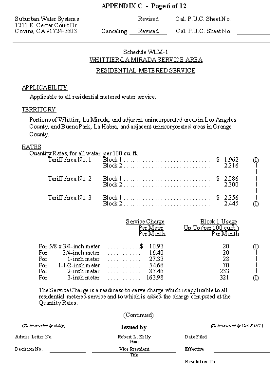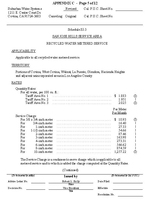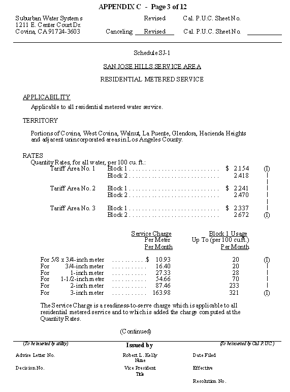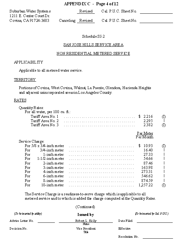 San Jose Hills Service Area Tariff Areas