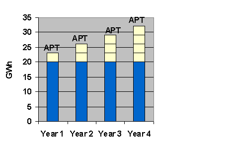 For example, if an LSE procures 100 MWh of eligible procurement in 2005 but only has a 2005 APT of 60 MWh, it may bank the extra 40 MWh as surplus procurement and use it to help meet any outstanding 2004 procurement deficits or deficits in the years 2006 and beyond.