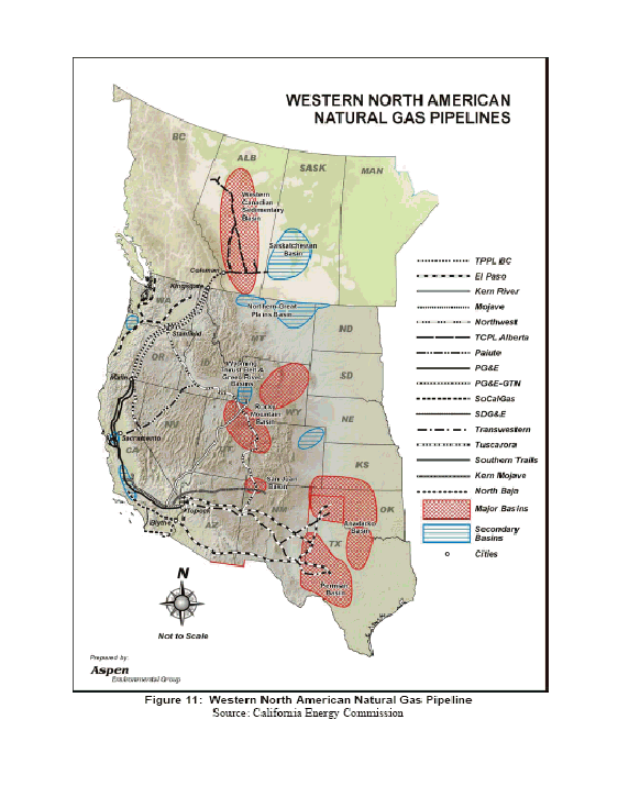 Since the energy crisis of 2001, additional interstate pipeline capacity to bring gas to California has been constructed. A major change is the doubling of capacity from the Rocky Mountain basin and the increase in capacity on the El Paso Southern System with the conversion of the All American pipeline. In addition, California storage capacity increased significantly by almost 41 Bcf providing a good buffer for the peaking winter months. California now has adequate pipeline infrastructure and in fact has substantial excess capacity.