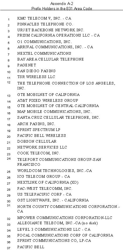 · The CPUC should further explore sharing of prefixes as a means to more efficiently utilize numbers in all area codes