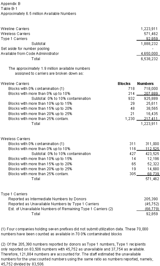 · The Commission should consider Type 1 numbers as potential donations to the number pool. Excess and unused Type 1 numbers should be returned to the wireline carriers and either used to serve customers or donated to the number pool.
