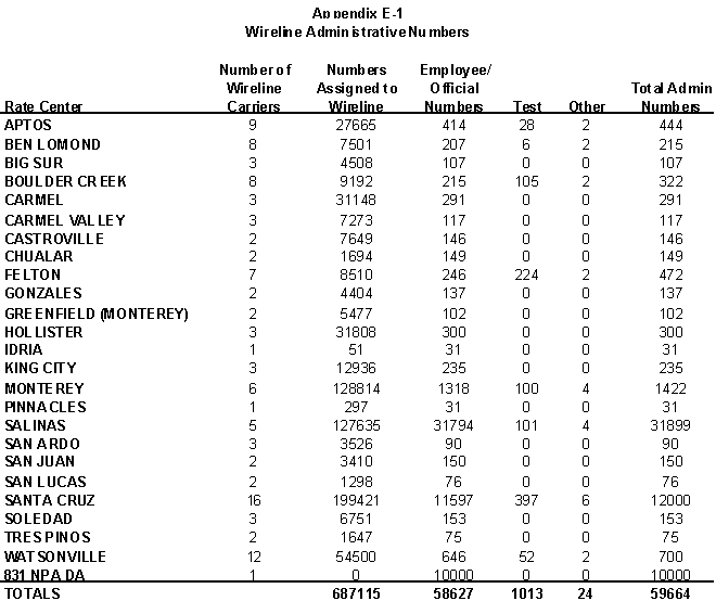 Administrative: Administrative numbers are numbers used by telecommunications carriers to perform internal administrative or operational functions necessary to maintain reasonable quality of service standards. Subcategories used in the Utilization Studies are: